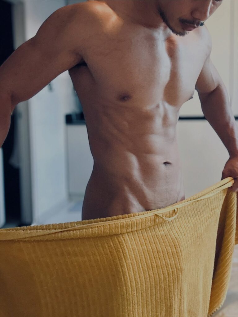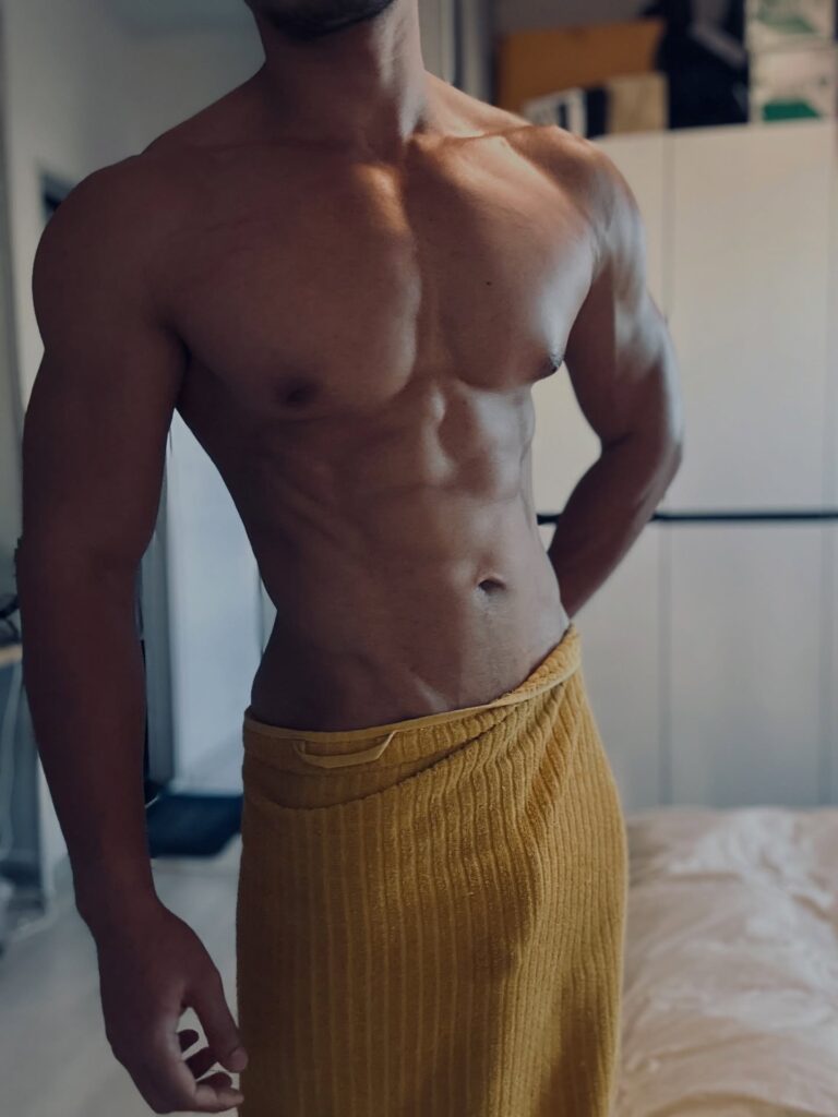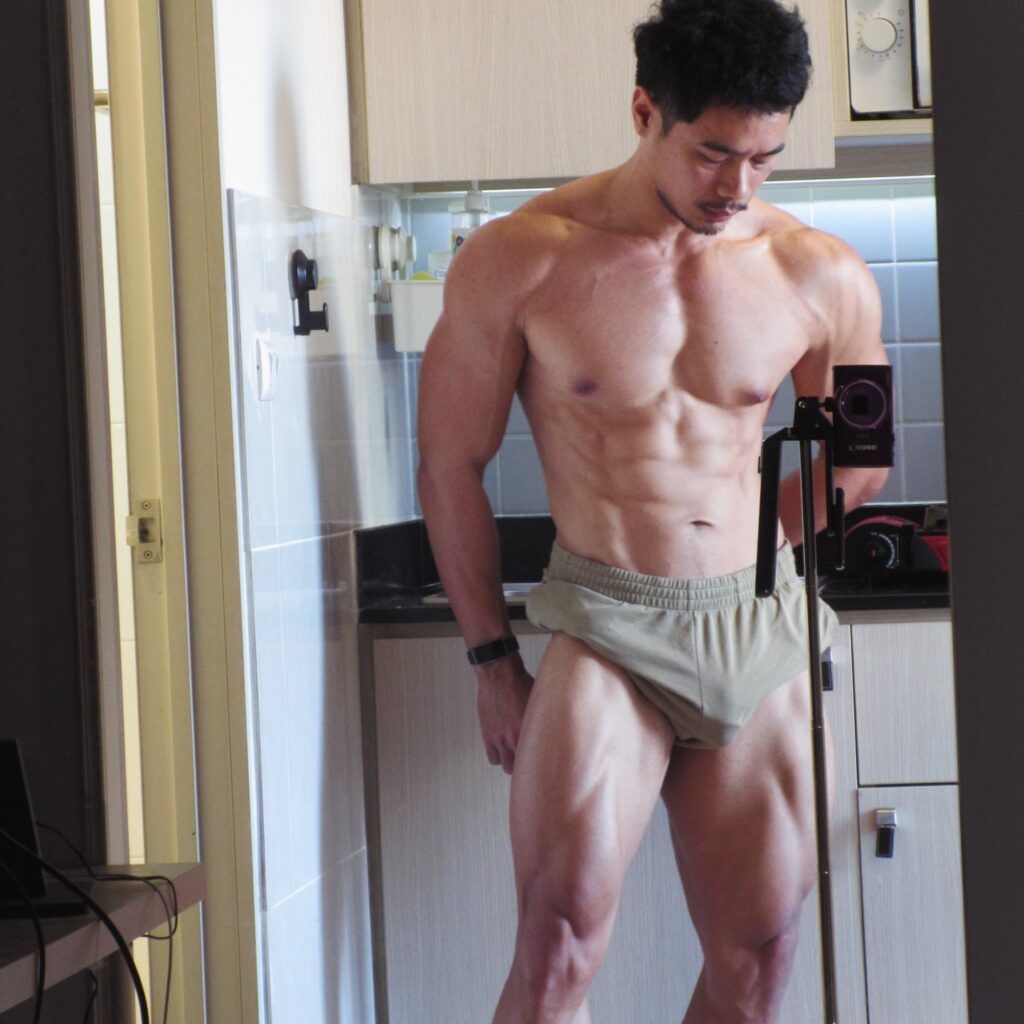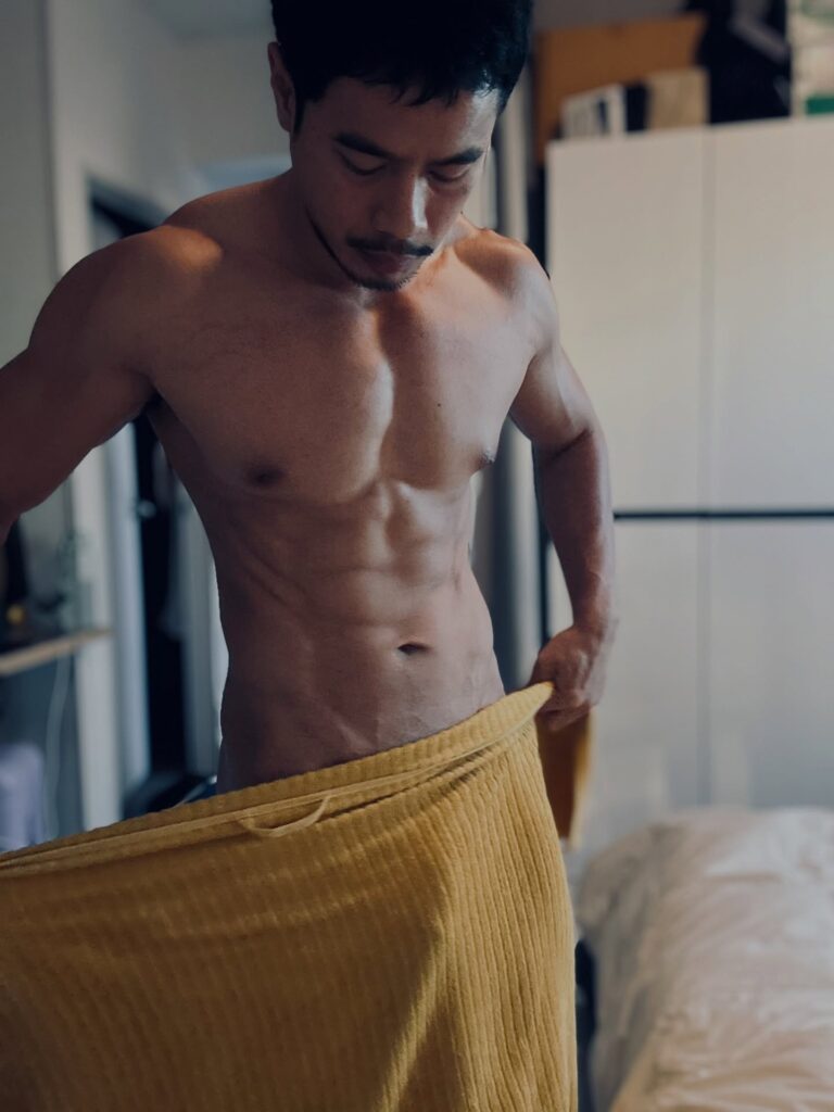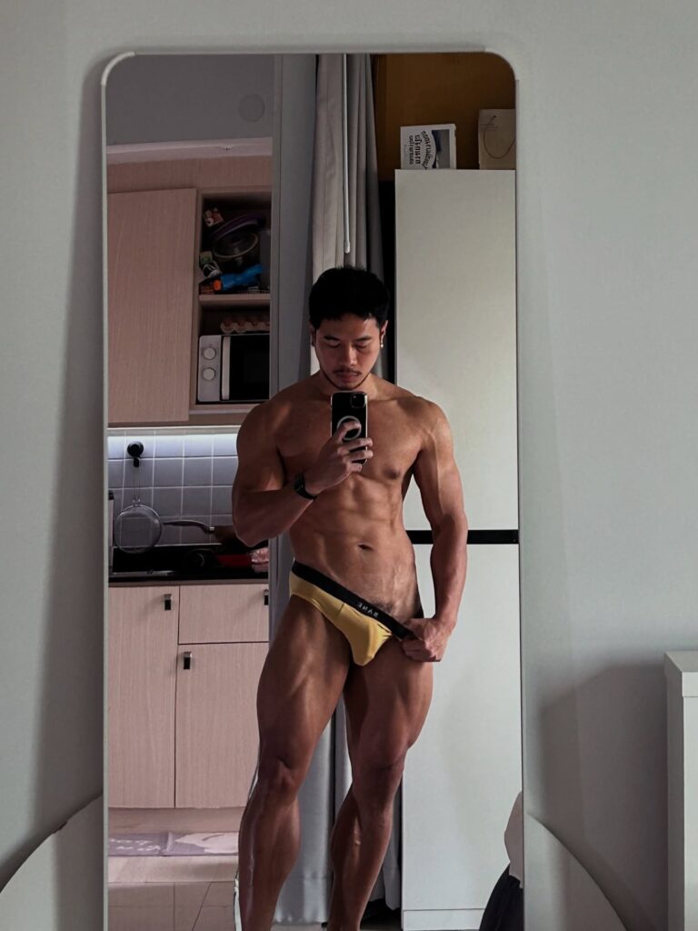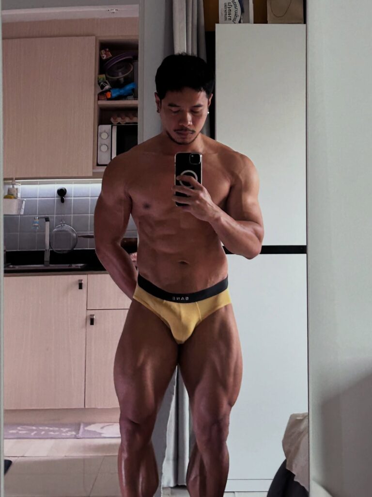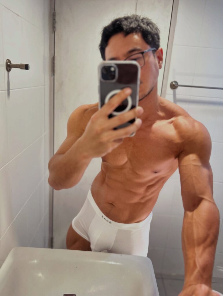เรื่องหุ่นคือพูดได้เต็มปากว่า สมส่วนมาก ซิกแพคมาแบบไม่โหด แขน ไหล่ ช่วงตัวทุกอย่างบาลานซ์ ดูเป็นคนที่ออกกำลังกายสม่ำเสมอ ไม่เร่ง ไม่ฝืน แต่ผลลัพธ์ออกมาดีแบบเห็นชัด ยิ่งบวกกับผิวแทนกำลังดี ยิ่งทำให้ลุคโดยรวมดูมีเสน่ห์แบบไม่ต้องปรุงเพิ่ม