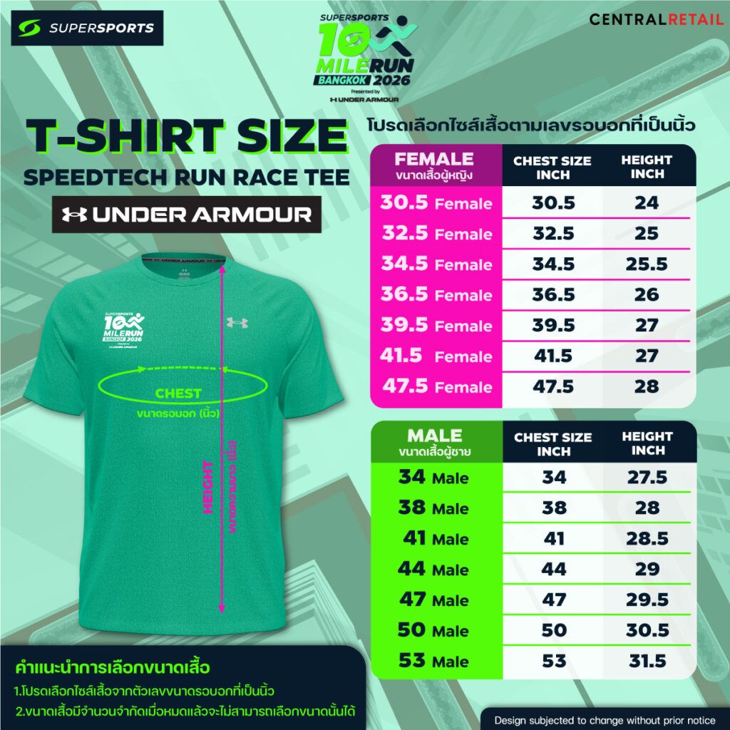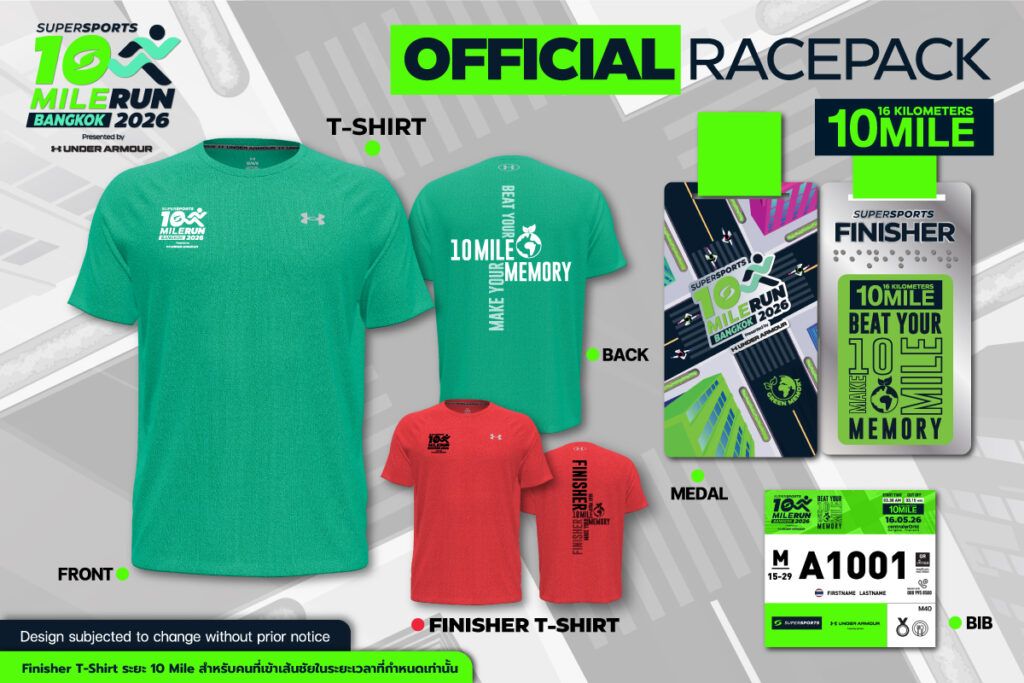 • เสื้อ Finisher Under Armour สำหรับผู้ที่เข้าเส้นชัยภายในเวลาที่กำหนด