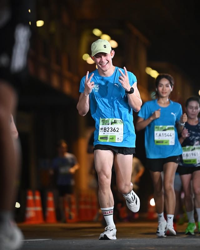ระยะ 21K ไม่ใช่ระยะที่วิ่งกันเล่นๆ เพราะต้องใช้พลังทั้งร่างกายและจิตใจตลอดเส้นทาง แต่สิ่งที่สะดุดตาสุดๆ คือแม้จะวิ่งไกล วิ่งเหนื่อยแค่ไหน Phumon ก็ยังคงรอยยิ้มสดใสไว้ได้ตลอดทาง ภาพจากในสนามบอกเลยว่ายิ้มจริง ไม่ใช่ยิ้มฝืน เป็นรอยยิ้มที่ดูแล้วรู้สึกถึงความสนุกกับการวิ่งอย่างแท้จริง