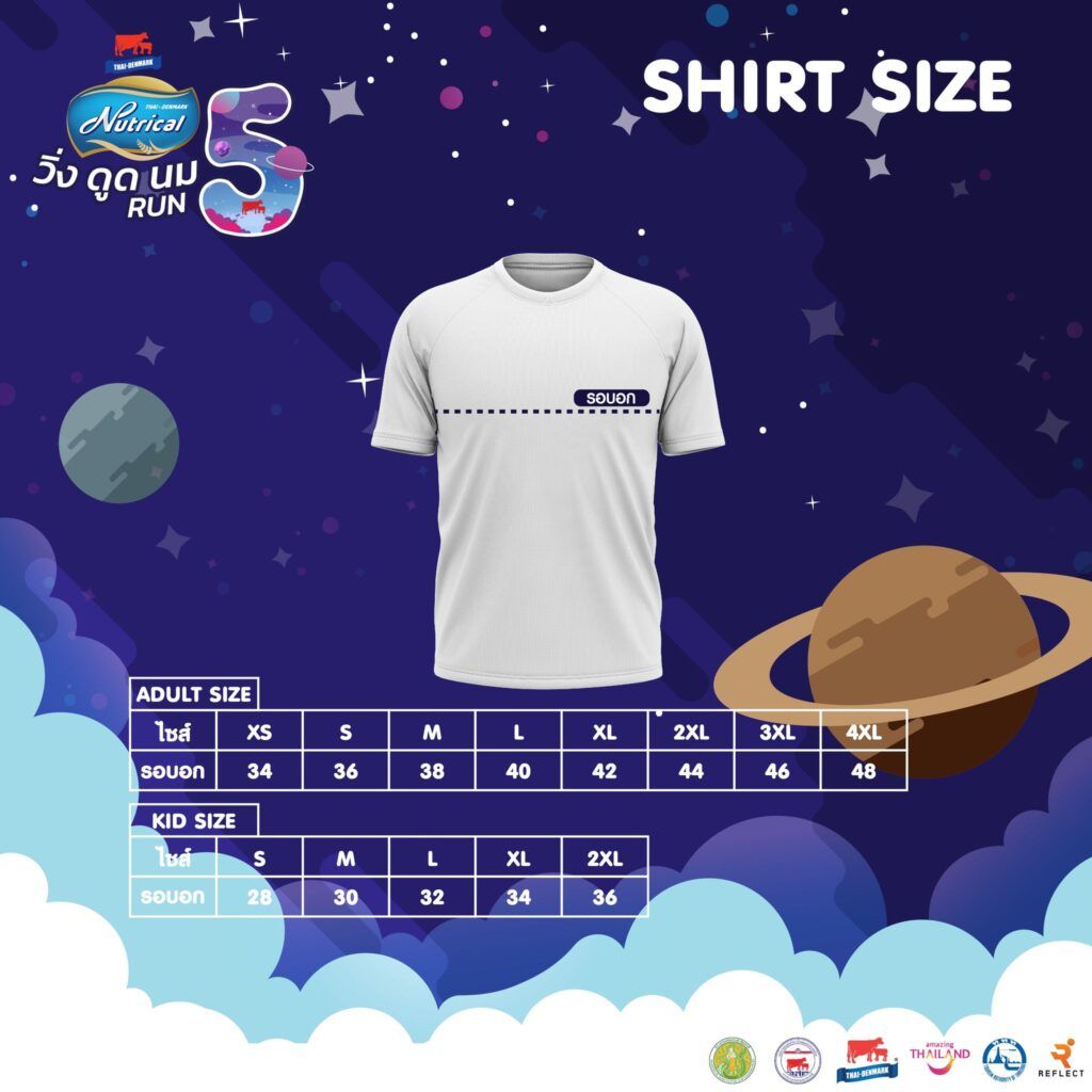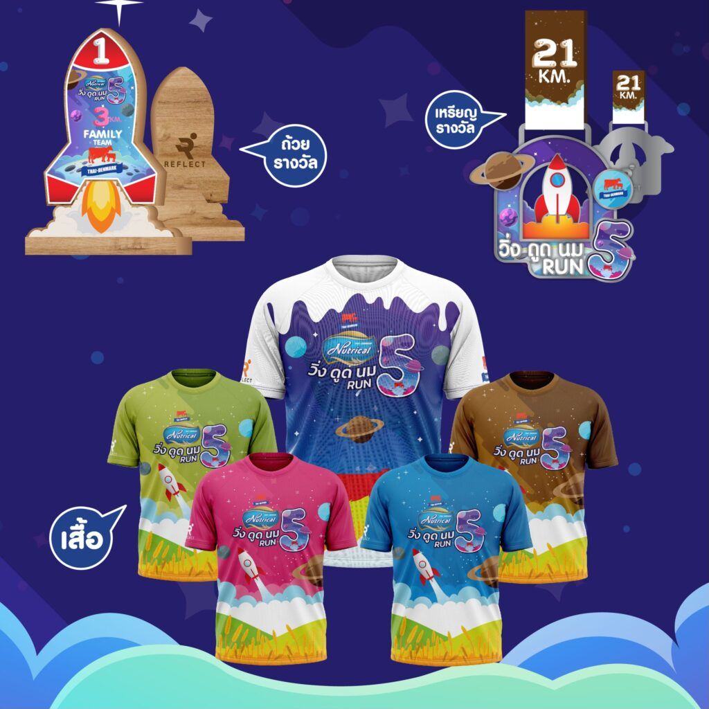 • ระยะ 5 KM. : เสื้อ, เหรียญ, BIB, อาหาร