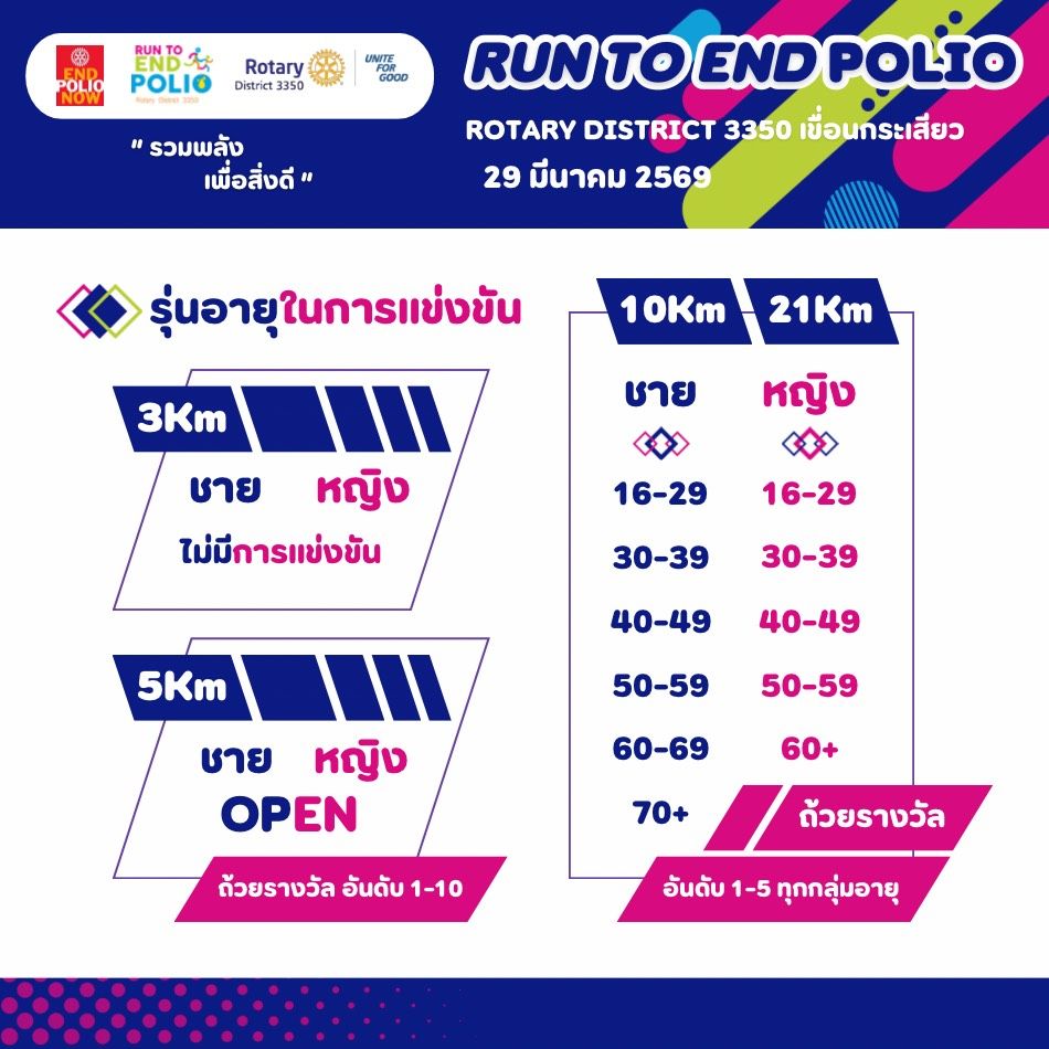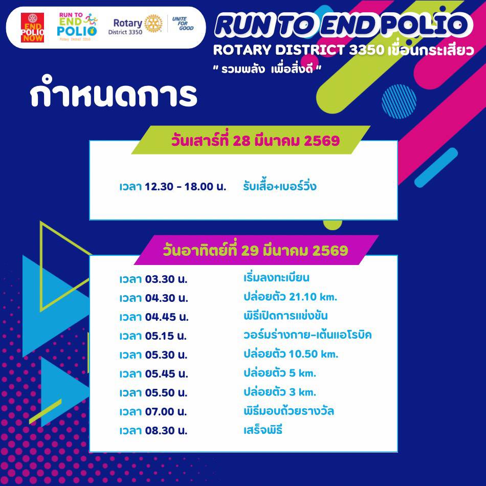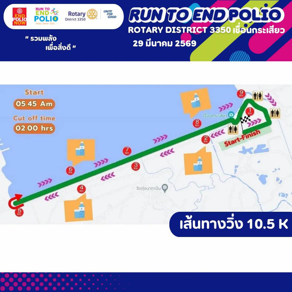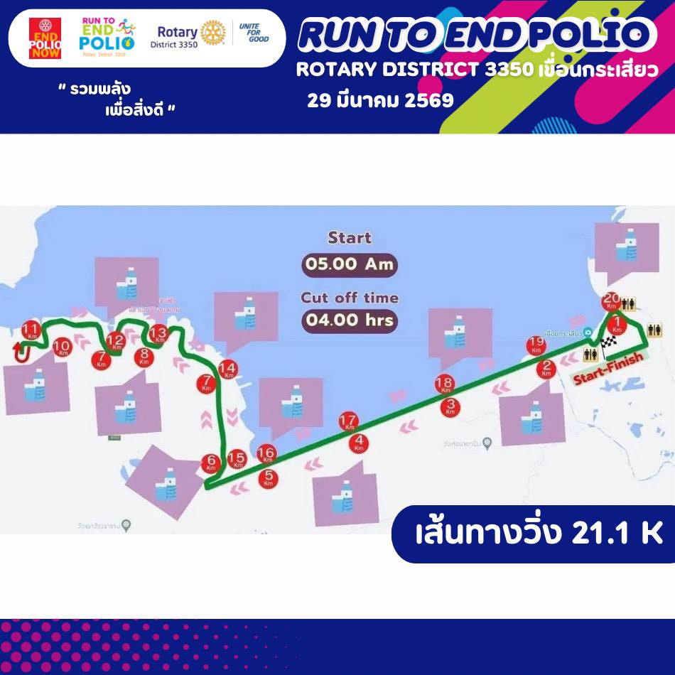 ไฮไลต์ของงานนี้ไม่ใช่แค่เรื่องเส้นทาง แต่ยังเป็นอีเวนต์วิ่งเพื่อสังคม เปิดโอกาสให้นักวิ่งร่วมเป็นส่วนหนึ่งในการรณรงค์ “ยุติโปลิโอ” พร้อมดูแลสุขภาพไปในตัว เรียกว่าวิ่งครั้งเดียวได้หลายต่อ
