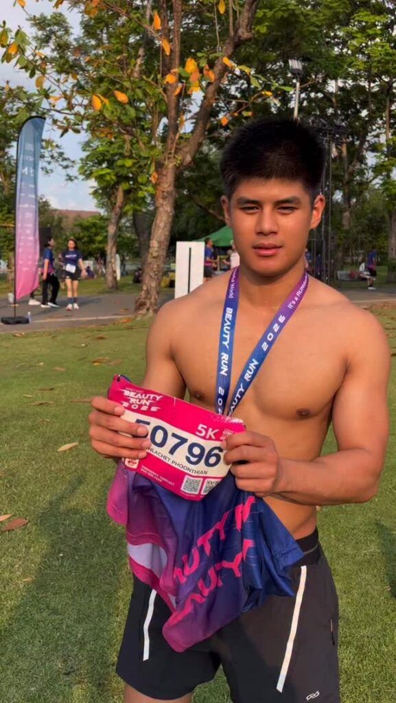 งานนี้หลายคนแซวกันว่าหนุ่มหล่อเยอะเป็นพิเศษ แต่บูมก็เป็นอีกคนที่โดดเด่นไม่เบา ด้วยลุคคนออกกำลังกายจริง รูปร่างฟิตกำลังดี ผิวแทนเบาๆ แบบคนดูแลตัวเองสม่ำเสมอ ใส่ชุดวิ่งแล้วดูคล่อง ดูมั่นใจ เป็นสายที่ไม่ได้มาเล่นๆ แต่เอ็นจอยกับการวิ่งและบรรยากาศในงานแบบเต็มที่