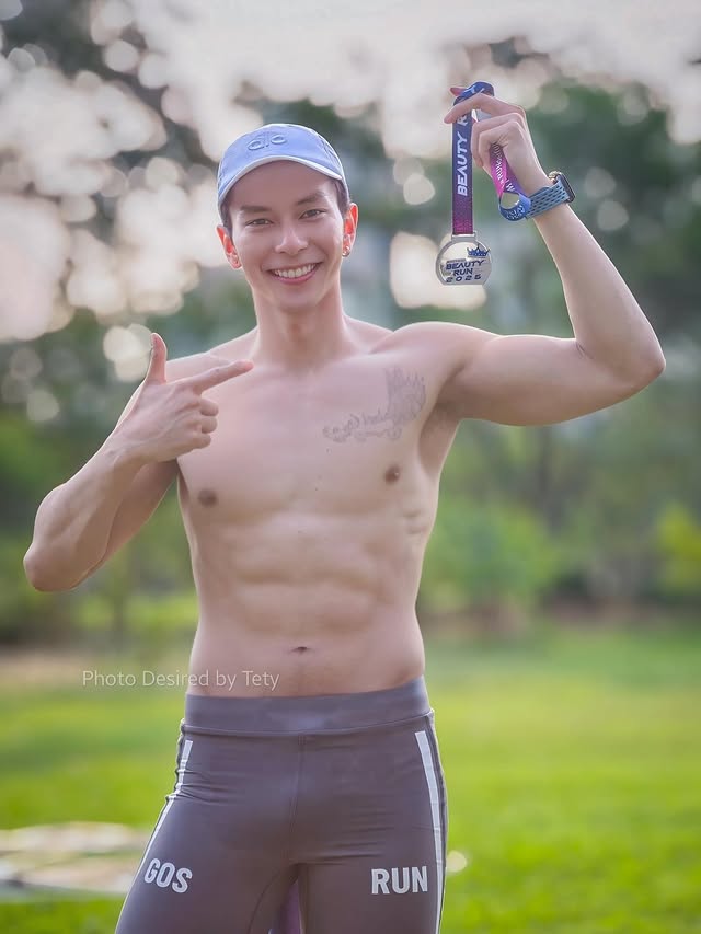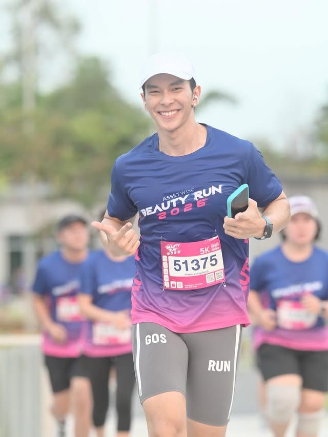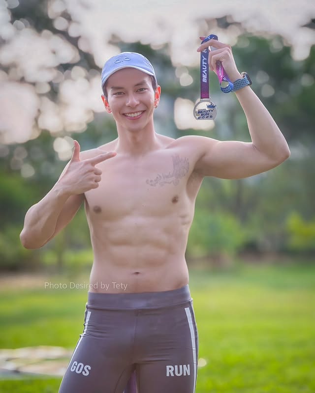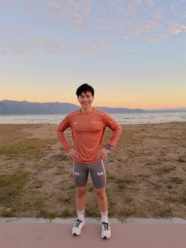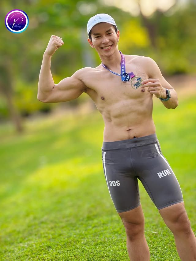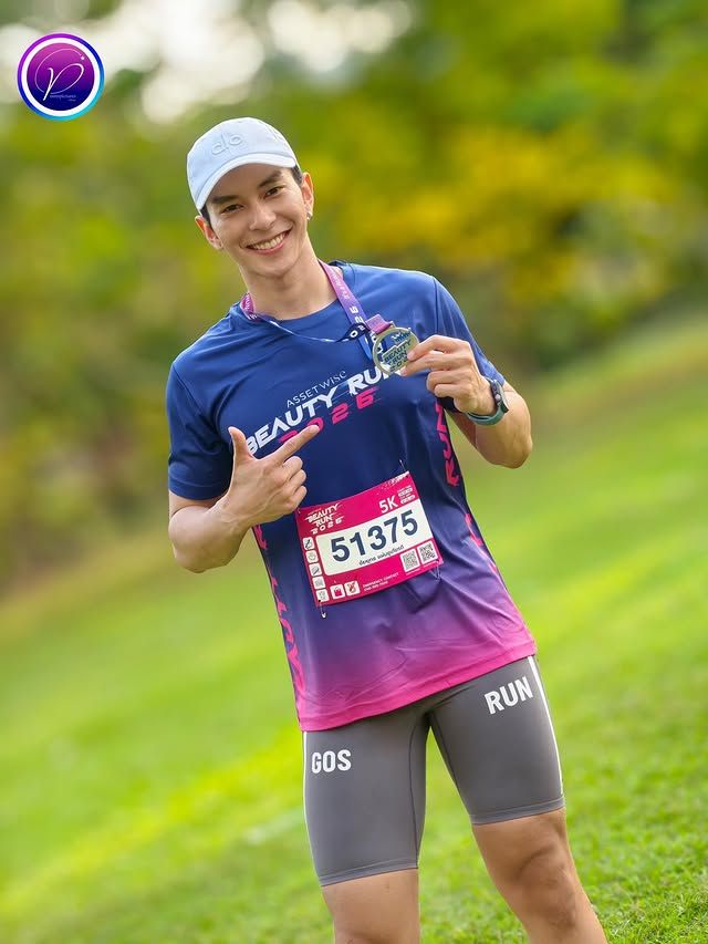 ถึงจะมาจากสายประกวด แต่พออยู่ในสนามวิ่งก็ไม่ได้มาแค่ถ่ายรูปเช็กอิน เห็นได้เลยว่าเป็นคนแอคทีฟ ชอบขยับตัว ออกกำลังกายสม่ำเสมอ เลยทำให้ลุคโดยรวมดูเฮลท์ตี้แบบกำลังดี ไม่ล่ำเกิน ไม่ผอมเกิน เป็นฟีลหนุ่มสปอร์ตที่ดูเข้าถึงง่าย