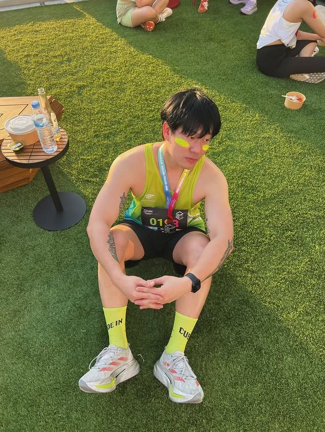 งานวิ่งแนว Vertical Run แบบนี้หลายคนอาจโฟกัสที่ความเร็วหรือเวลา แต่สำหรับ Aussawin ความน่าสนใจมันอยู่ที่พลังบวกของบรรยากาศ เอ้ย…พลังความสดใสที่เขาพกมาเต็มๆ ทั้งลุค ทั้งสายตา ทั้งจังหวะก้าวที่ดูตั้งใจ แม้จะเป็นสนามที่เหนื่อยไม่เบา แต่ภาพรวมกลับดูสบายๆ และมีเสน่ห์แบบคนรักการออกกำลังกายจริงๆ