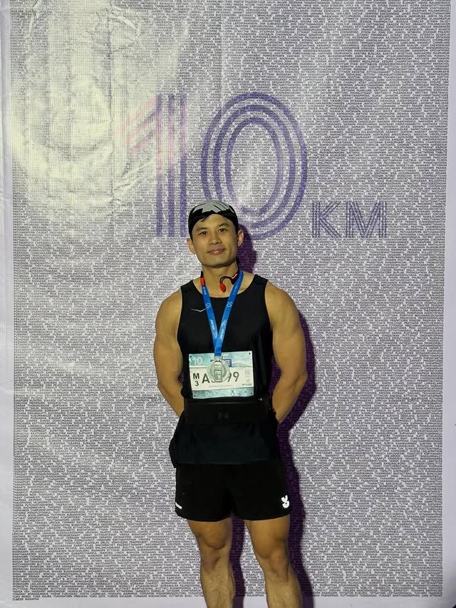 แต่สิ่งที่ทำให้หลายคนสะดุดตาไม่ได้มีแค่เวลาในการวิ่งเท่านั้น เพราะภาพจากสนามก็ต้องบอกเลยว่าดูดีมากจริง ๆ เวลาวิ่งมีเสน่ห์แบบนักกีฬาสายฟิตเต็มตัว ทั้งท่าทางการวิ่งที่ดูมั่นใจ ฟอร์มที่ดูแข็งแรง และบุคลิกที่สะท้อนความเป็นคนออกกำลังกายอย่างสม่ำเสมอ ยิ่งรู้ว่าเจ้าตัวเป็นเทรนเนอร์ด้วยก็ยิ่งไม่แปลกใจ เพราะหุ่นที่เห็นในภาพนั้นเรียกว่าเฟิร์มมาก กล้ามเนื้อดูสวยและได้รูปตามสไตล์คนที่ดูแลร่างกายจริงจัง