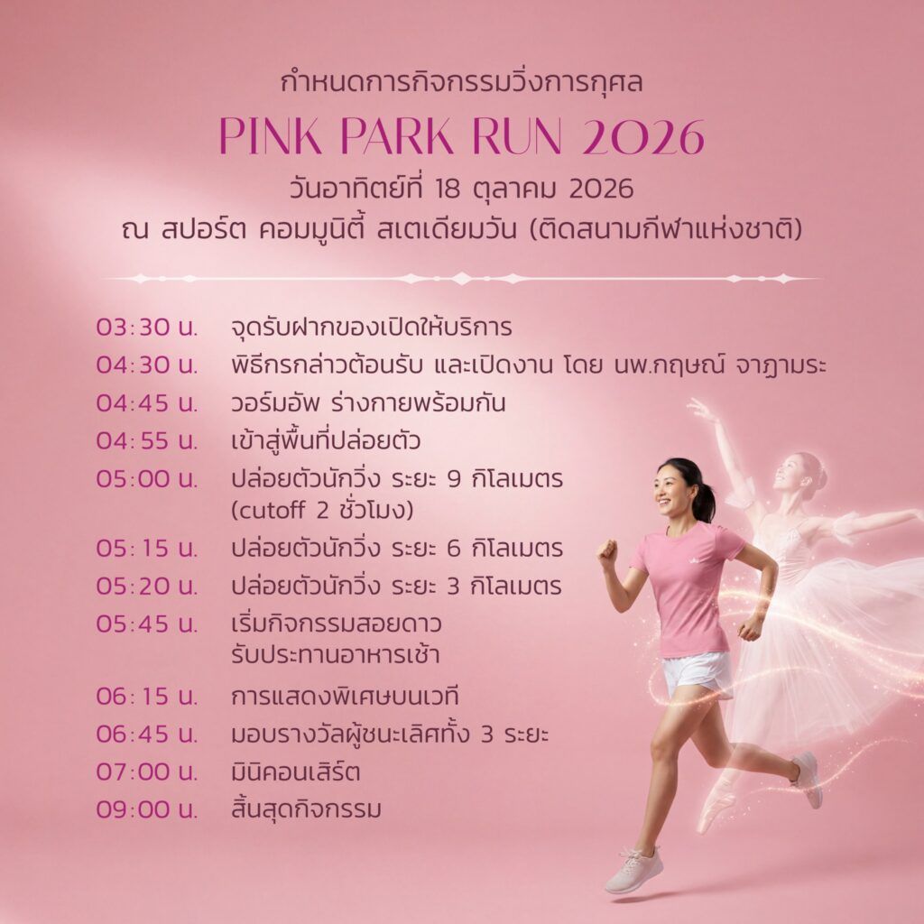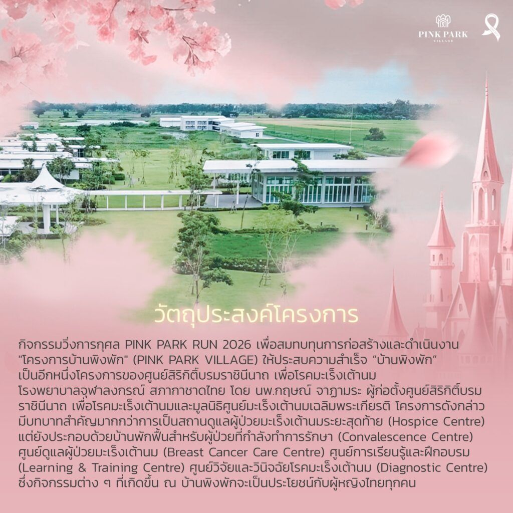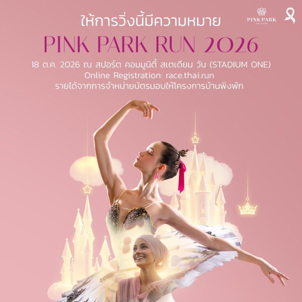 PINK PARK RUN 2026 งานวิ่งการกุศลเพื่อระดมทุนสนับสนุน “โครงการบ้านพิงพัก” ที่พักพิงและศูนย์ดูแลผู้ป่วยมะเร็งเต้านม