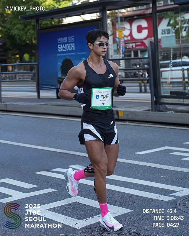 뿐만 아니라 Lee Sijin은 탄탄한 근육과 선명한 복근, 그리고 건강한 태닝 피부로 운동선수다운 매력을 뽐내며 많은 이들의 시선을 사로잡았다. 퍼포먼스와 비주얼 모두를 갖춘 러너로서 앞으로의 활약이 더욱 기대된다.