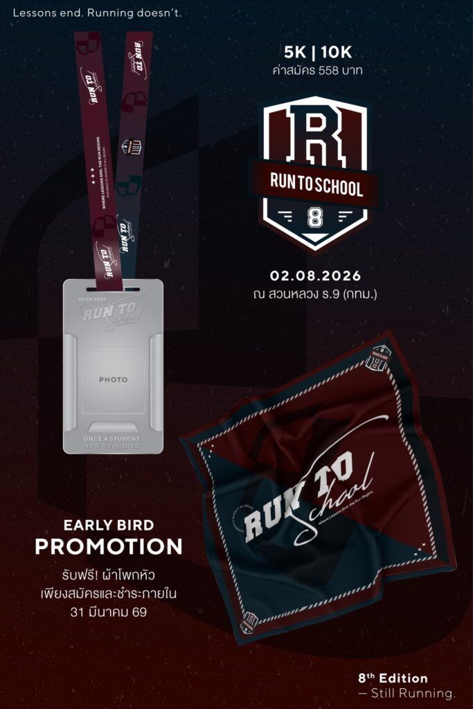 กลับมาอีกครั้งตามคำเรียกร้องกับ RUN TO SCHOOL 2026 งานวิ่งธีมโรงเรียนที่หลายคนรอคอย เดินทางมาถึงปีที่ 8 แล้ว บอกเลยว่าปีนี้มาในโทน เรียบ เท่ เข้ม แต่ยังคงความสนุกแบบย้อนวัย ที่จะพาทุกคนกลับไปอินกับบรรยากาศ “รั้วโรงเรียน” อีกครั้งแบบจัดเต็ม