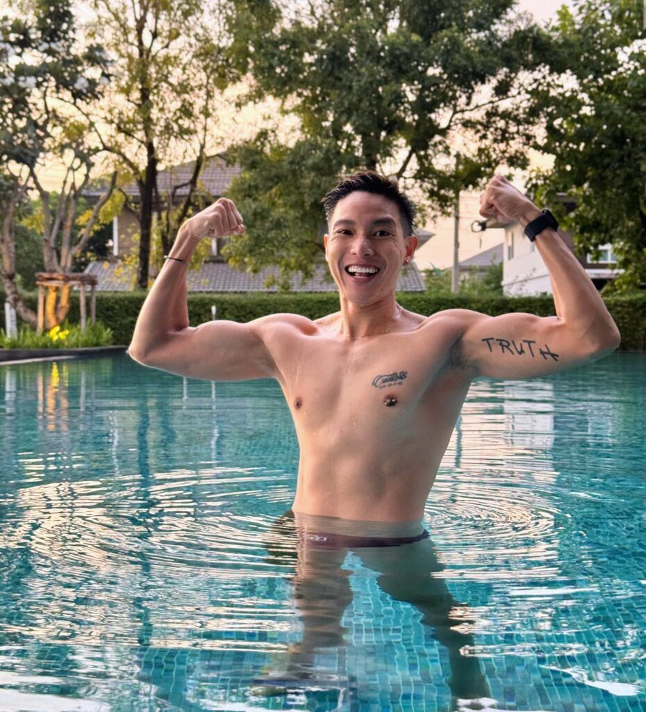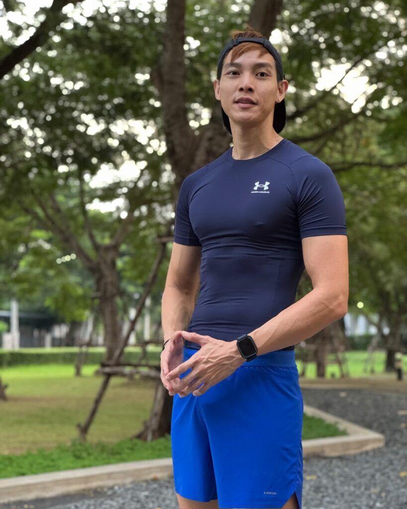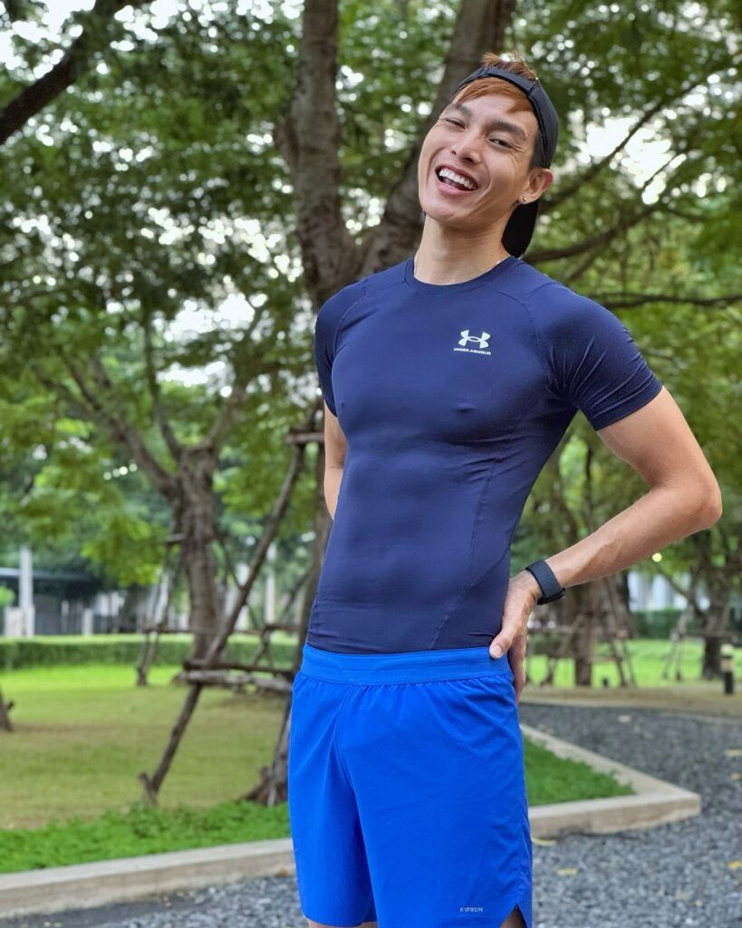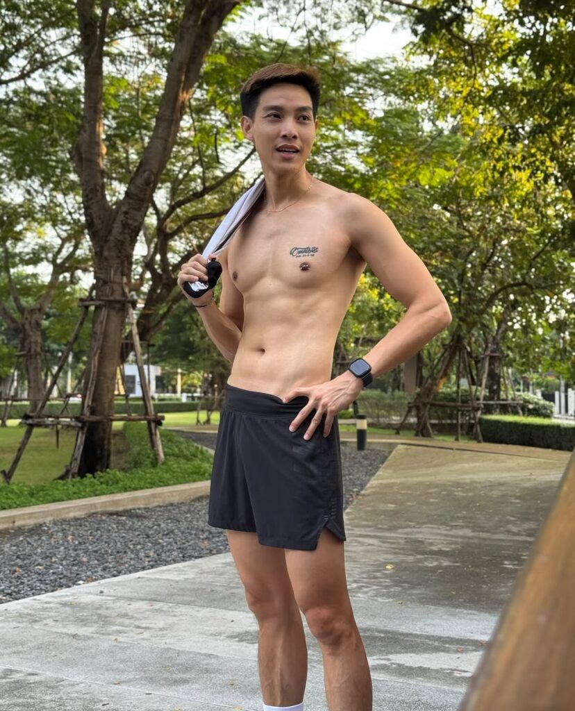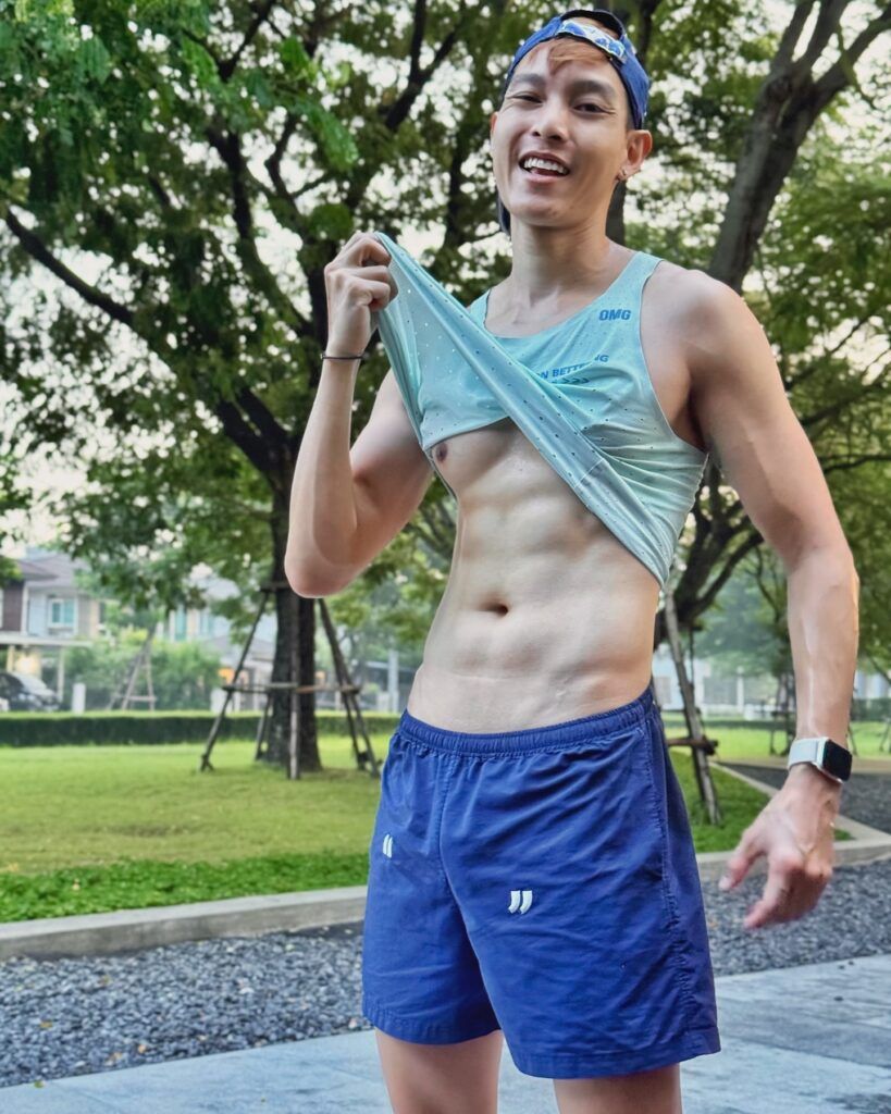นอกจากความหล่อใสสไตล์บัสแล้ว เรื่องหุ่นก็ไม่เป็นสองรองใคร ด้วยความแน่นของกล้ามเนื้อที่บ่งบอกถึงการฝึกซ้อมอย่างมีวินัย ยิ่งมาพร้อมกับการใส่ชุดวิ่งพอดีตัว ก็ยิ่งเผยให้เห็นซิกแพคชัดแบบไม่ต้องเดา บอกเลยว่าหนุ่มคนนี้ทั้งฟิตและเฟิร์มจนหลายคนอยากสมัครวิ่งตาม
