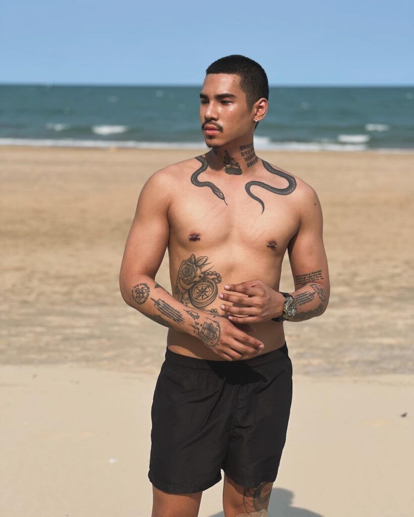 เท่จนใจละลาย! พรหมสุธี หนุ่มไทยที่หุ่นดีเวอร์ รอยสักมีเสน่ห์มาก