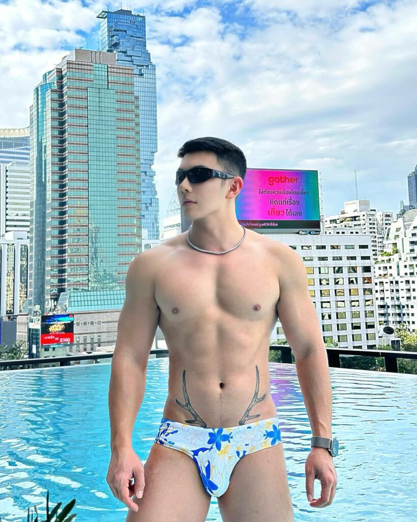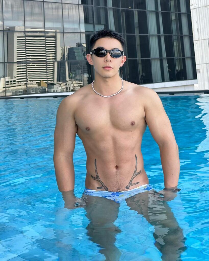 Kun Zhang มาพร้อมกับความหล่อสะอาดตาที่ละมุนหัวใจมากๆ หน้าคมตี๋สไตล์ลูกคุณชายที่มองกี่ทีก็ไม่มีเบื่อ แถมหุ่นคือดีย์เว่อร์ ซิกแพคแน่นๆ ขาวๆ มาแบบไม่มีหวงงาน ไม่มีปิดแสง งานนี้เล่นน้ำสงกรานต์ยังไงให้กลายเป็นรันเวย์ก็ต้องยกให้เขาจริงๆ นอกจากความขาวจั๊วะแล้ว รอยสักสุดเท่ที่โผล่พอให้ใจสั่นก็ยิ่งเพิ่มความดึงดูดใจเข้าไปอีก เท่แบบมีคลาสไม่หวือหวา แต่ตราตรึงสุดๆ